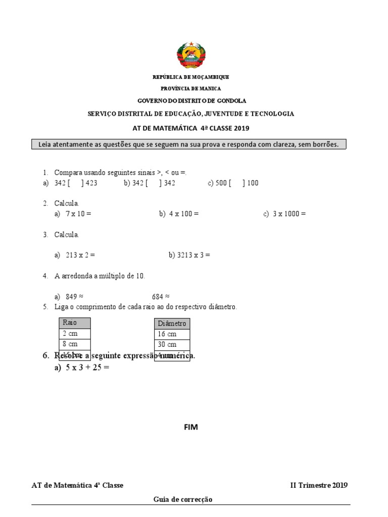 AT DE CIÊNCIAS SOCIAIS 4ª CLASSE, II TRIMESTRE 2019