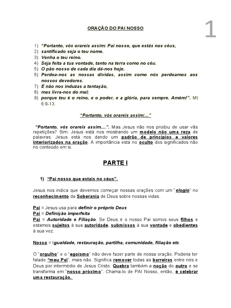 RESUMO DA ORAÇÃO DO PAI NOSSO