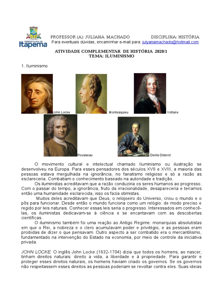 descontroladas. Assim sendo, alguns representantes do Iluminismo ensinaram princípios
