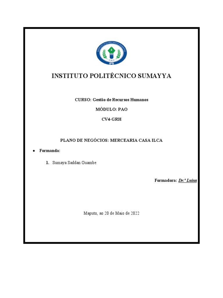 O projecto refere-se a elaboração de um Plano de Negócios para melhorias em um