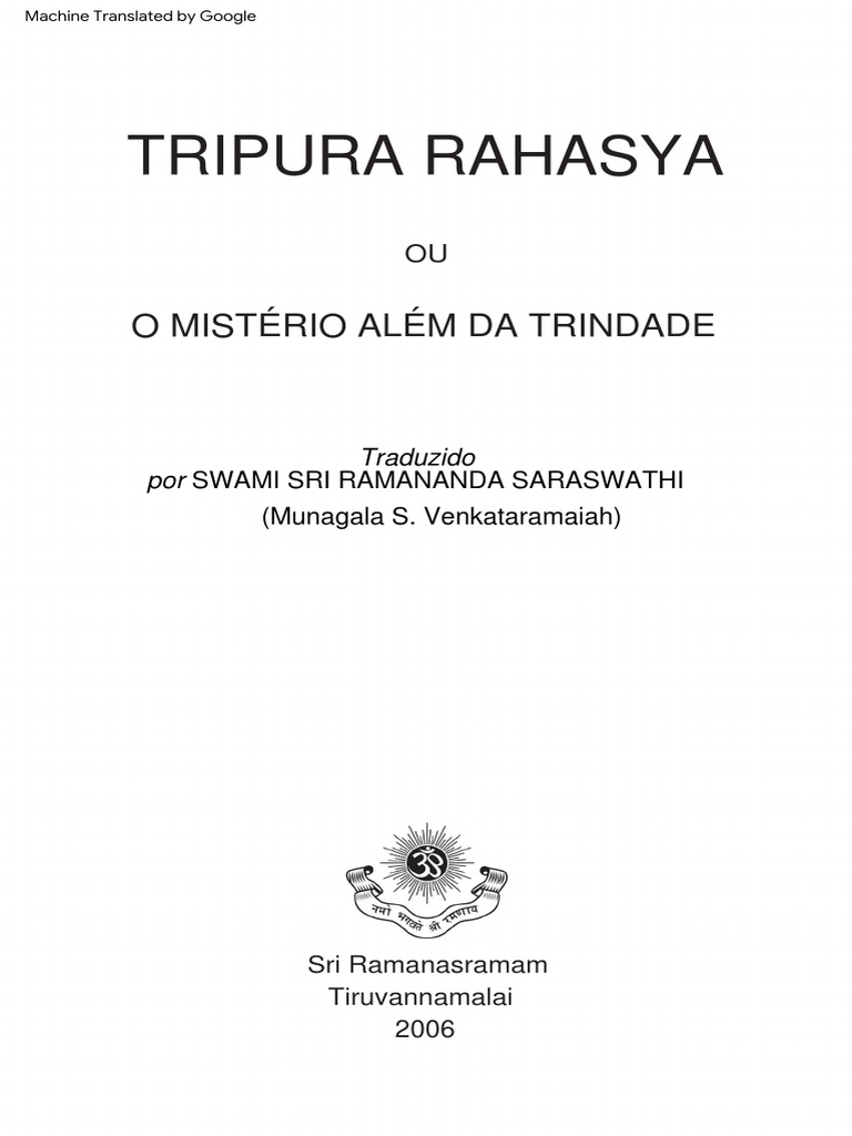 Tripura Rahasya foi considerado por Bhagavan Sri Ramana