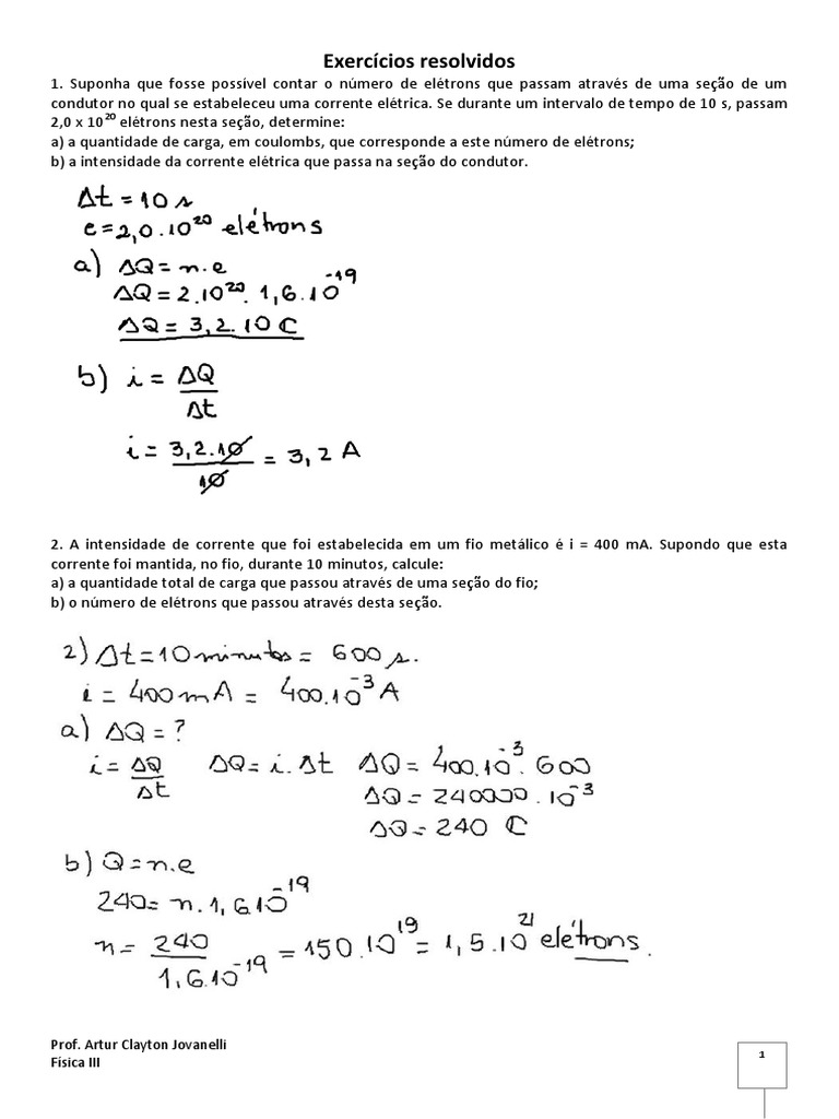 2. A intensidade de corrente que foi estabelecida em um fio metálico é i = 400 mA. Supondo que esta