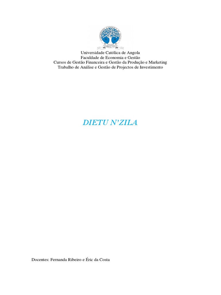 Denominamos este projecto de investimento/plano de negócios como Dietu N’Zila,