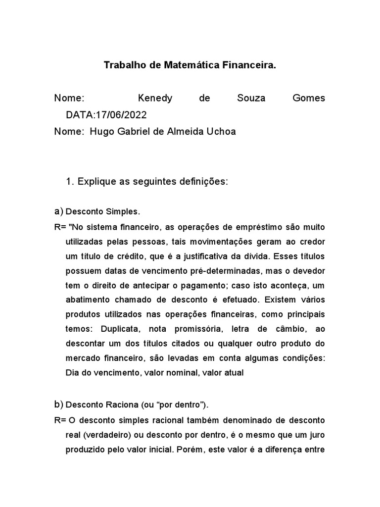 Trabalho de Matemática Financeira.