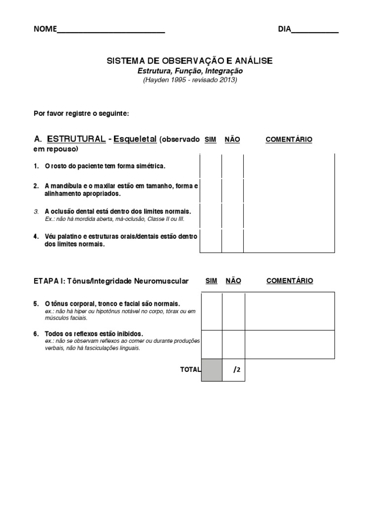 A. ESTRUTURAL - Esqueletal (observado SIM NÃO COMENTÁRIO