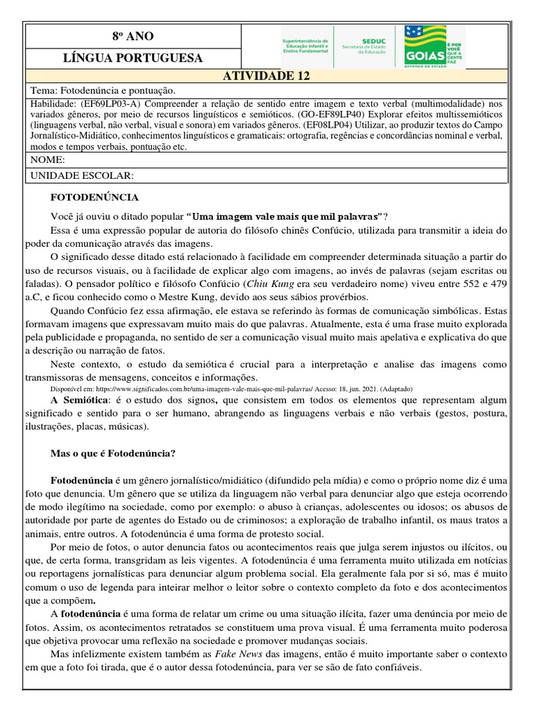 Tema: Fotodenúncia e pontuação.