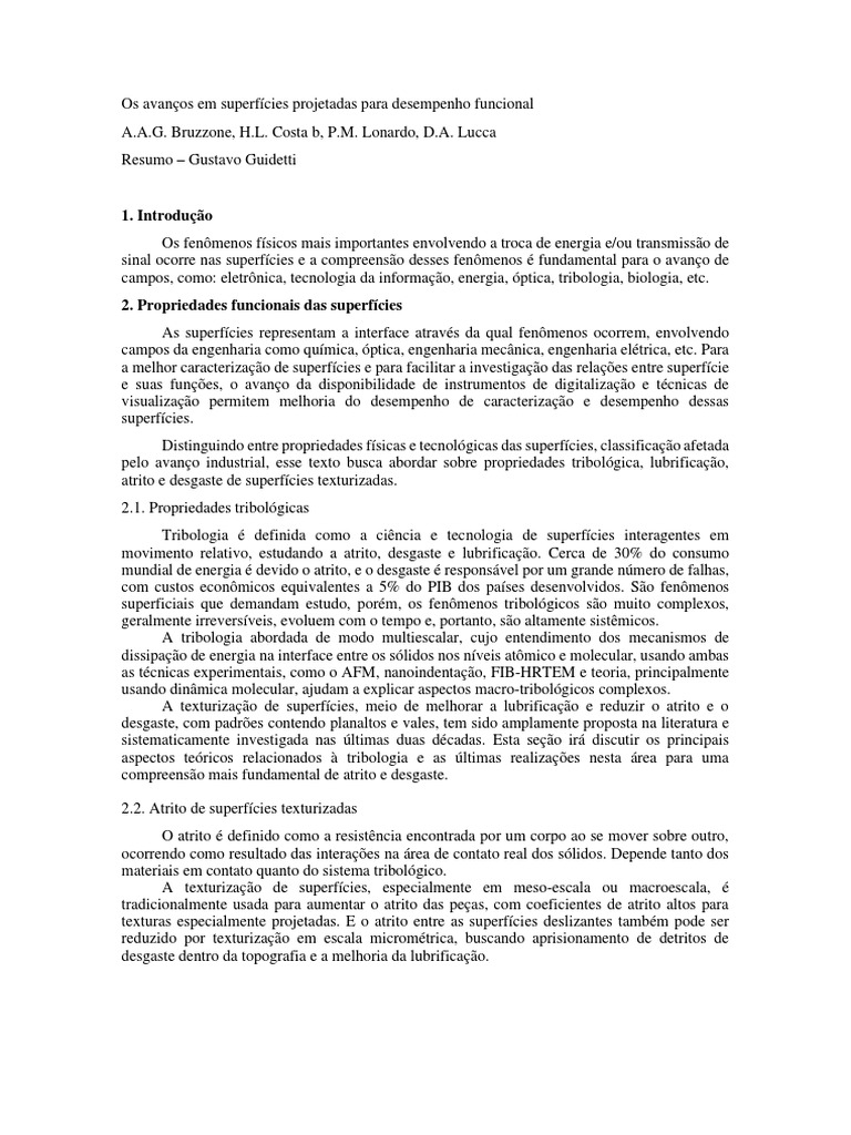 Os Avanços em Superfícies Projetadas