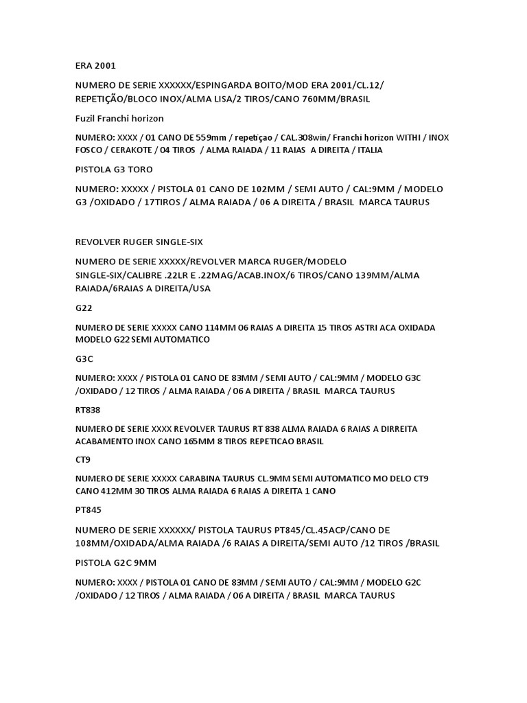 NUMERO:XXXX / 01CANO DE 212MM / 07 TIROS /cl.44mag/ REPETIÇÃO /PRETO