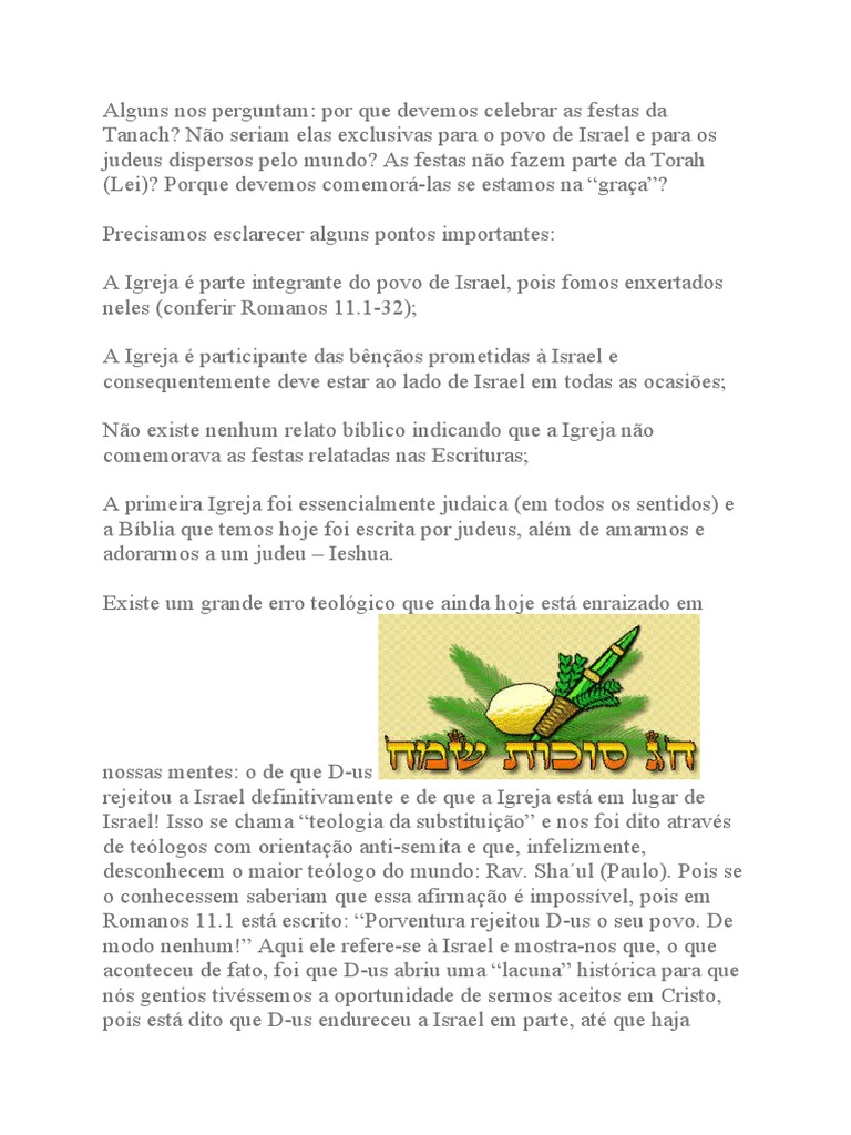 aspectos da festa, tanto históricos, quanto bíblicos, quanto proféticos e