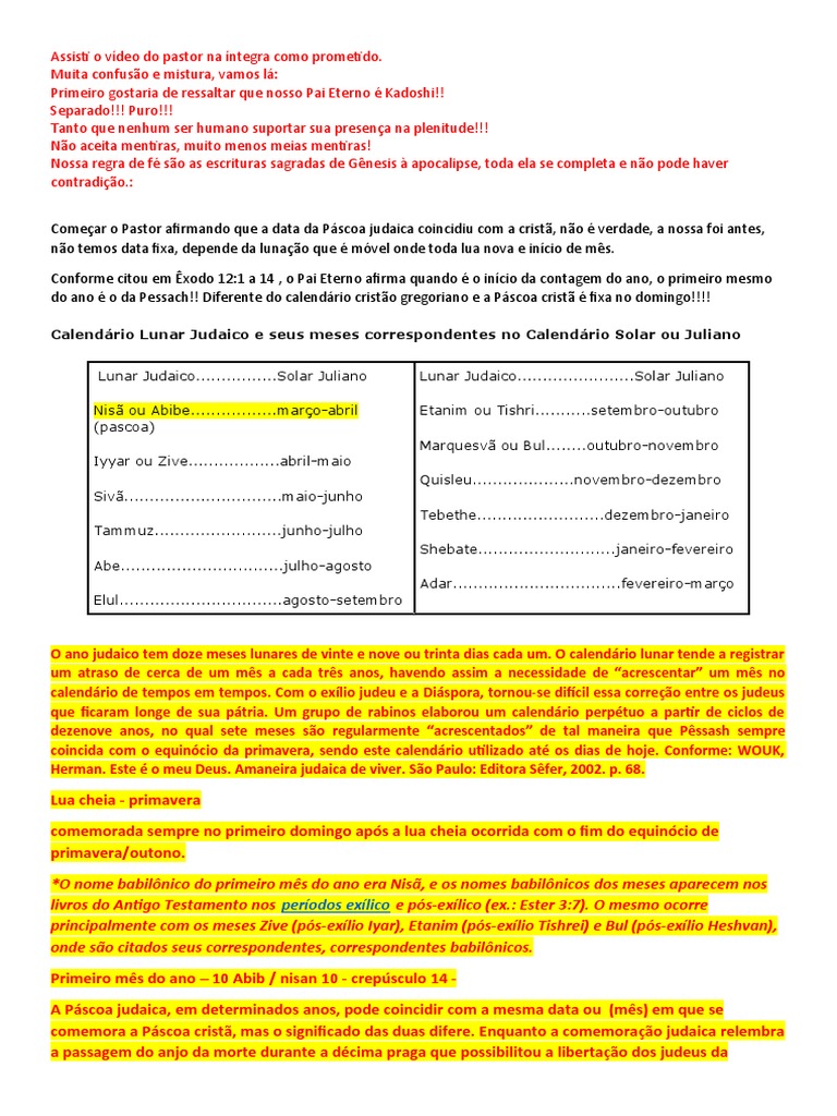 Começar o Pastor afirmando que a data da Páscoa judaica coincidiu com a cristã, não é verdade, a nossa foi antes,