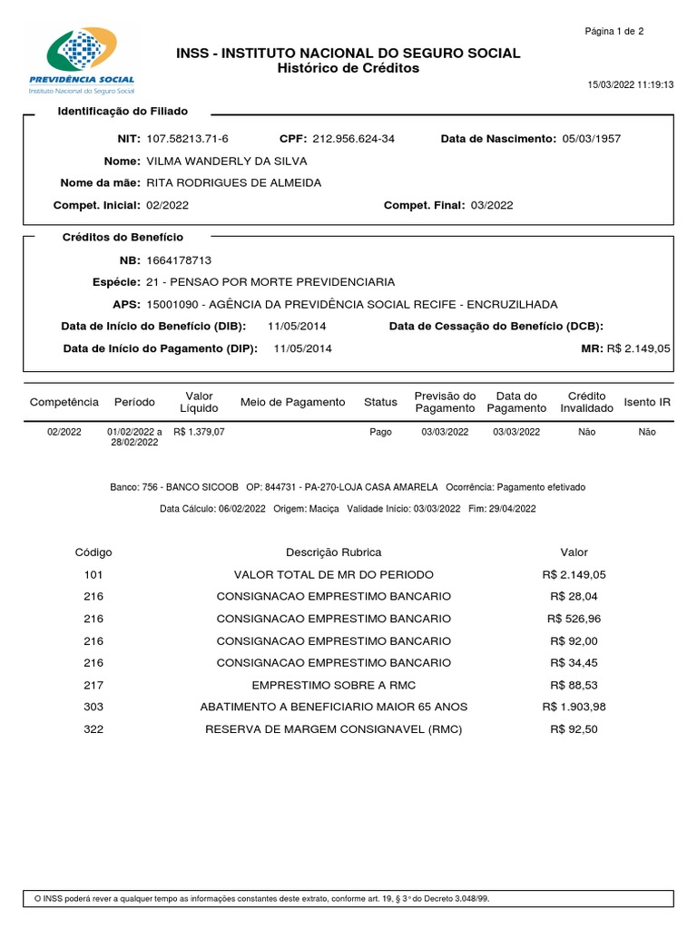 02/2022 01/02/2022 a R$ 1.379,07 Pago 03/03/2022 03/03/2022 Não Não