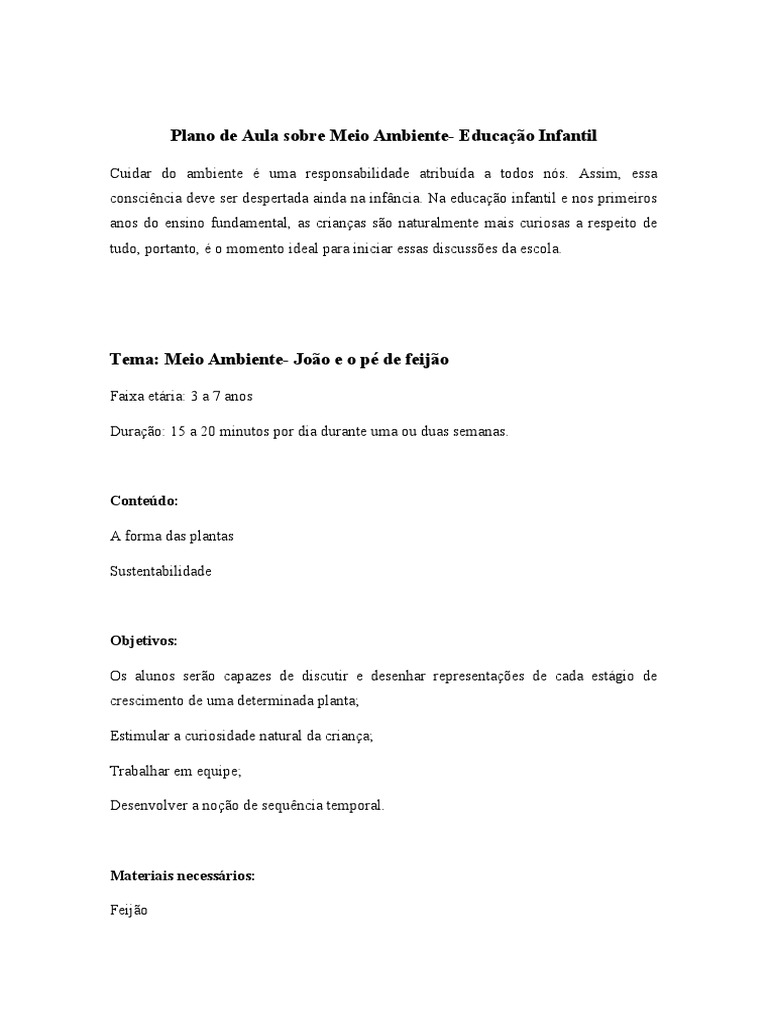 Plano de Aula sobre Meio Ambiente- Educação Infantil