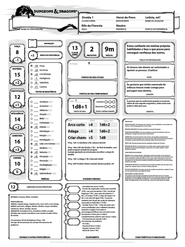 NOME DO PERSONAGEM RAÇA TENDÊNCIA PONTOS DE EXPERIÊNCIA