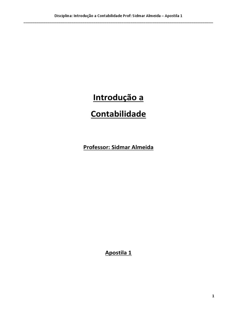 Disciplina: Introdução a Contabilidade Prof: Sidmar Almeida – Apostila 1