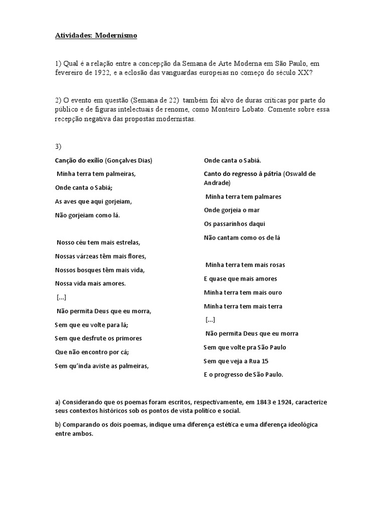 Atividades: Modernismo