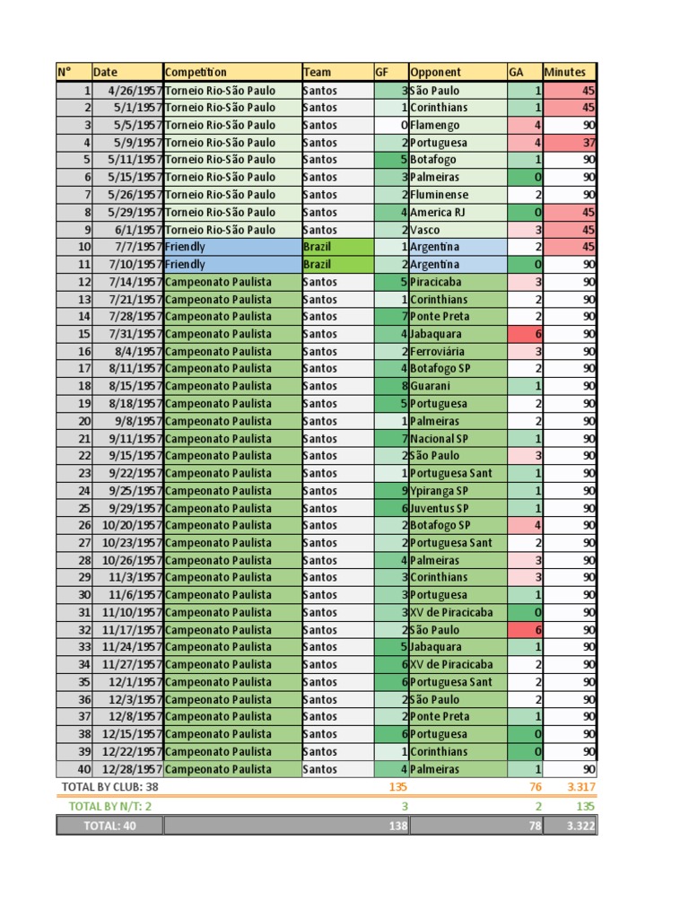 33 11/24/1957 Campeonato Paulista Santos 5 Jabaquara 1 90