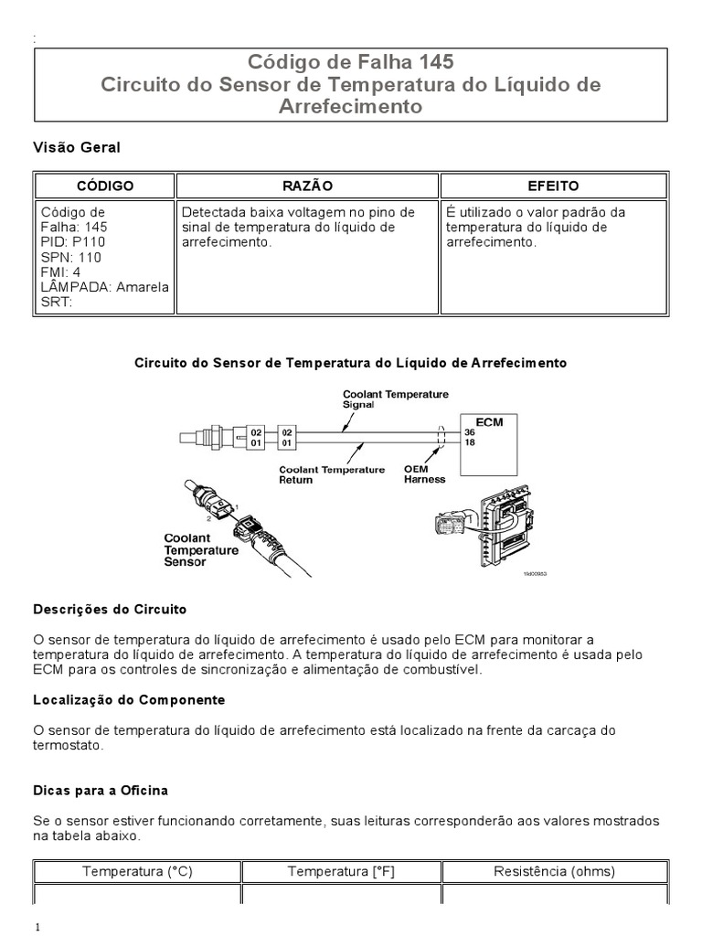 Falha: 145 sinal de temperatura do líquido de temperatura do líquido de