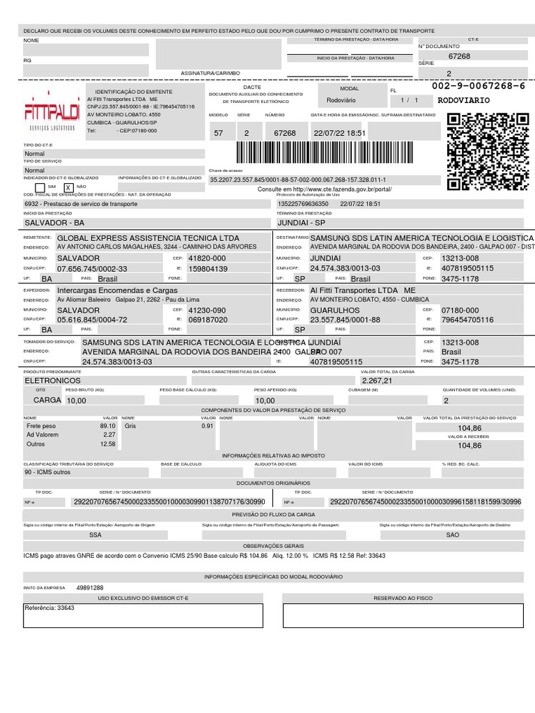 6932 - Prestacao de servico de transporte 135225769636350 22/07/22 18:51