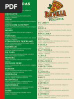 Molho caseiro, muçarela, calabresa ralada, pimenta calabresa, cebola, milho, azeitona e
