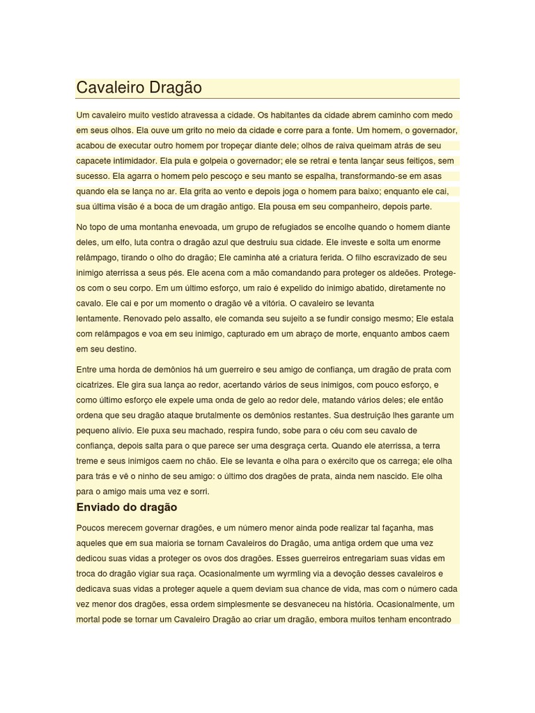 Muitos dragões possuem poderes que nem eles conhecem. Um Cavaleiro do Dragão conhece as