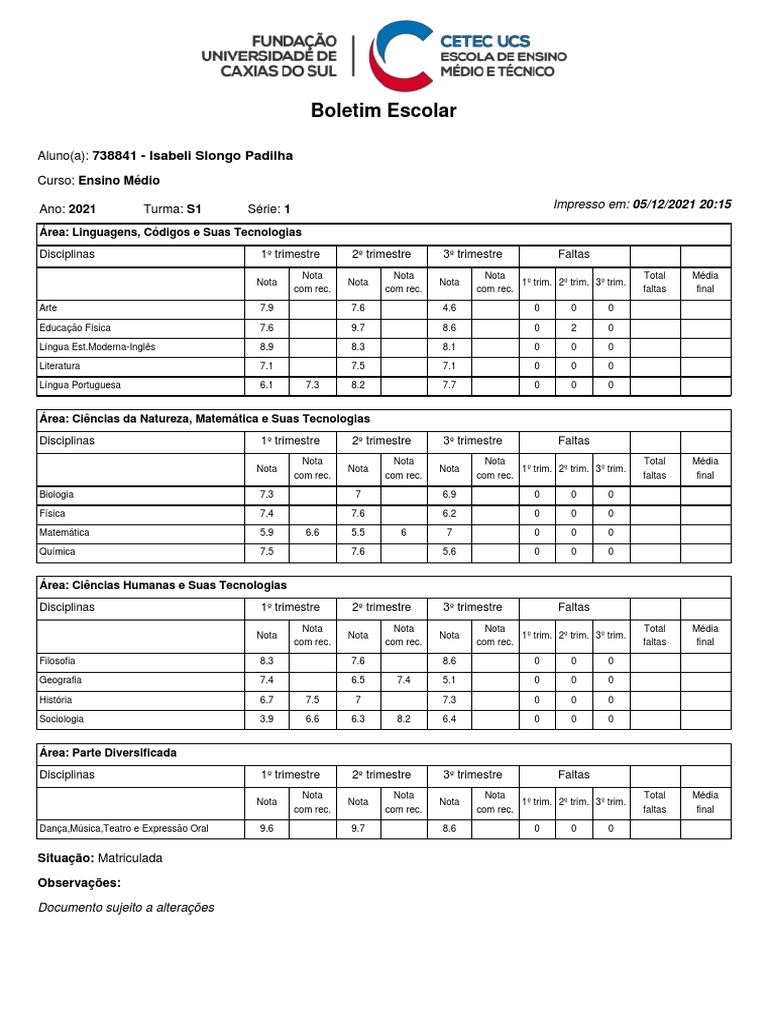 Ano: 2021 Turma: S1 Série: 1 Impresso em: 05/12/2021 20:15