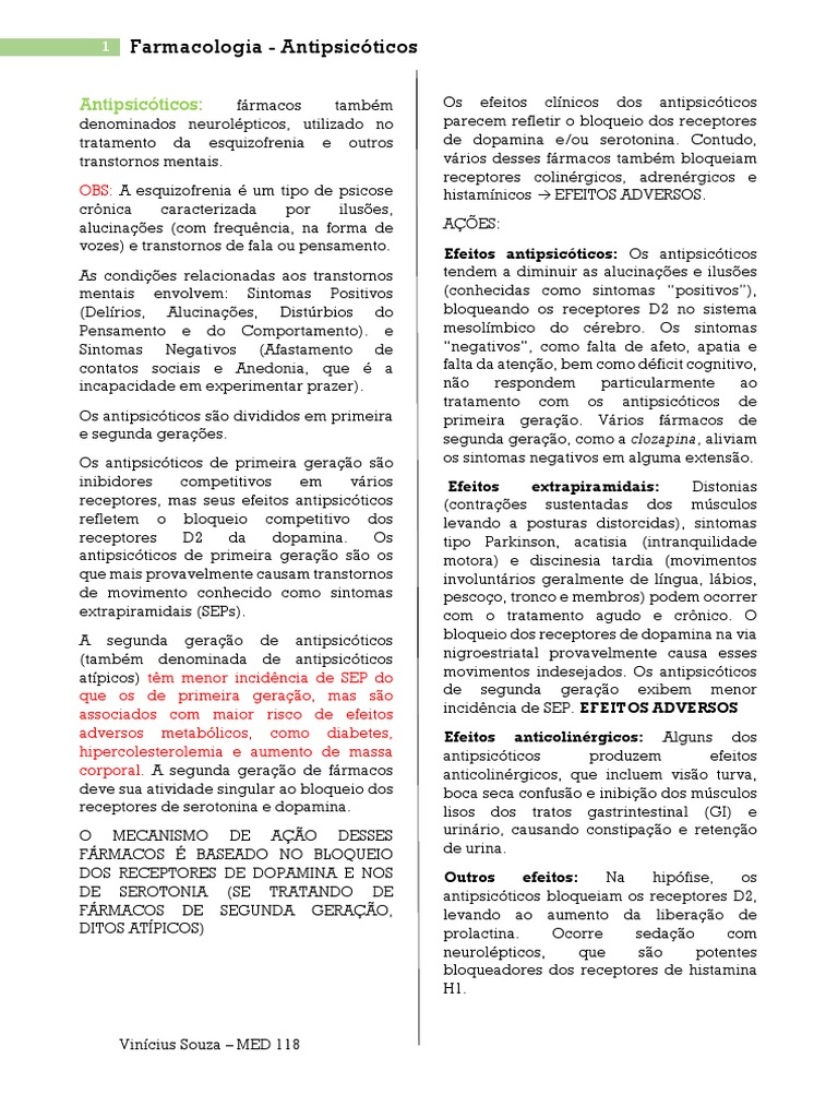 Os antipsicóticos são divididos em primeira primeira geração. Vários fármacos de