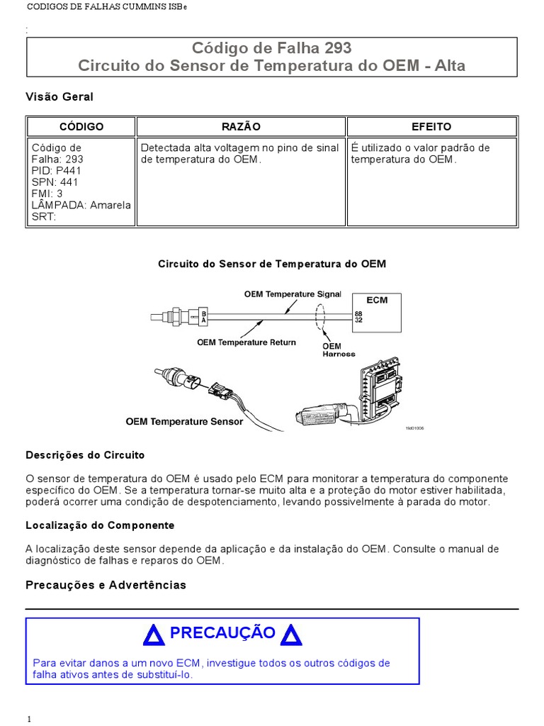 Falha: 293 de temperatura do OEM. temperatura do OEM.
