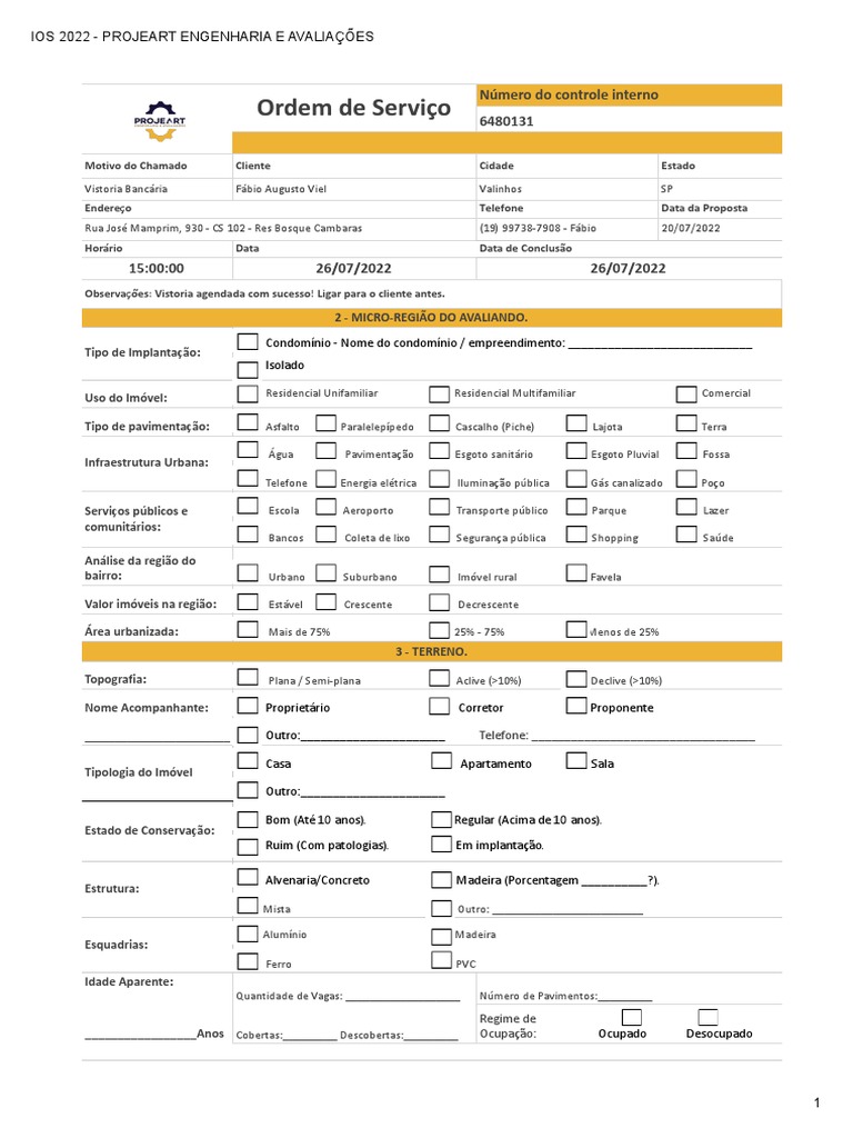 Rua José Mamprim, 930 - CS 102 - Res Bosque Cambaras (19) 99738-7908 - Fábio 20/07/2022