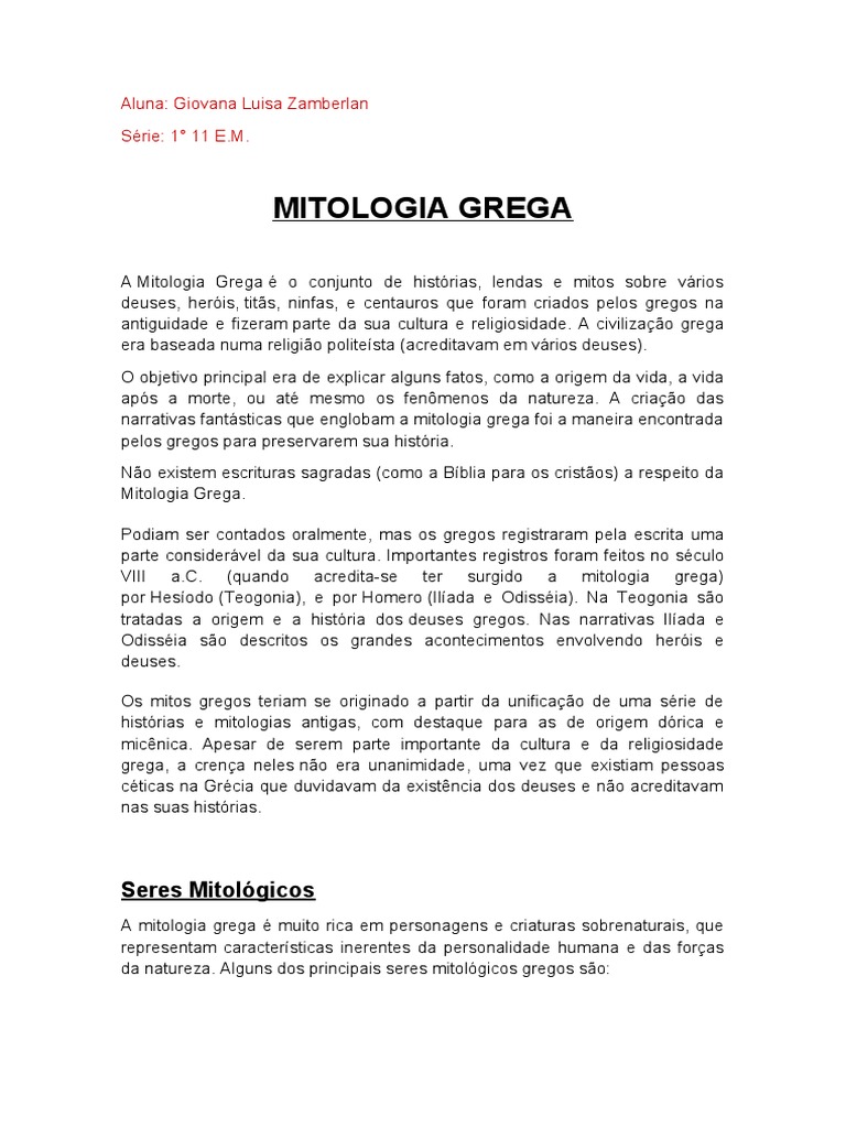 deuses, heróis, titãs, ninfas, e centauros que foram criados pelos gregos na