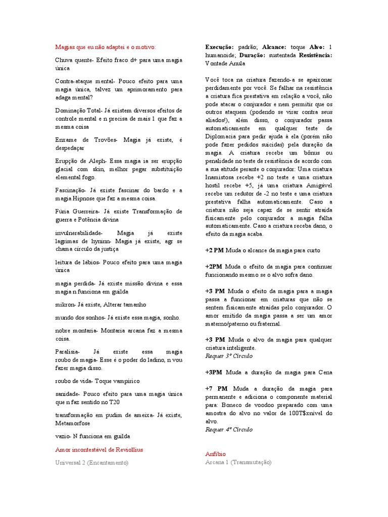 Magias que eu não adaptei e o motivo: Execução: padrão; Alcance: toque Alvo: 1