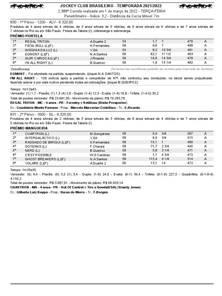 2.388ª Corrida realizada em 1 de março de 2022 - TERÇA-FEIRA