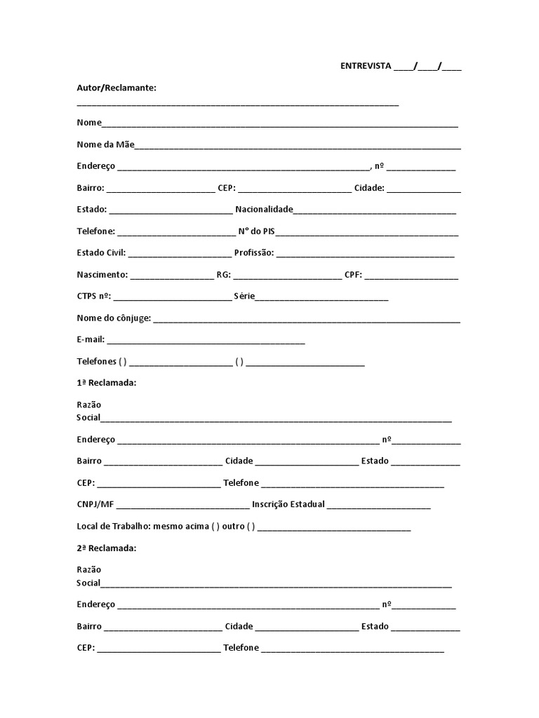 Nascimento: _________________ RG: ______________________ CPF: ___________________