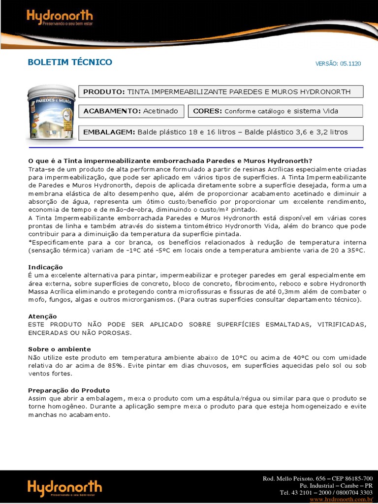 PRODUTO: TINTA IMPERMEABILIZANTE PAREDES E MUROS HYDRONORTH