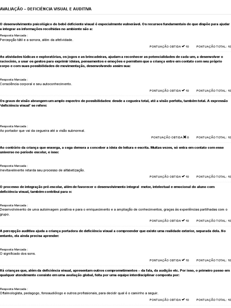 AVALIAÇÃO – DEFICIÊNCIA VISUAL E AUDITIVA