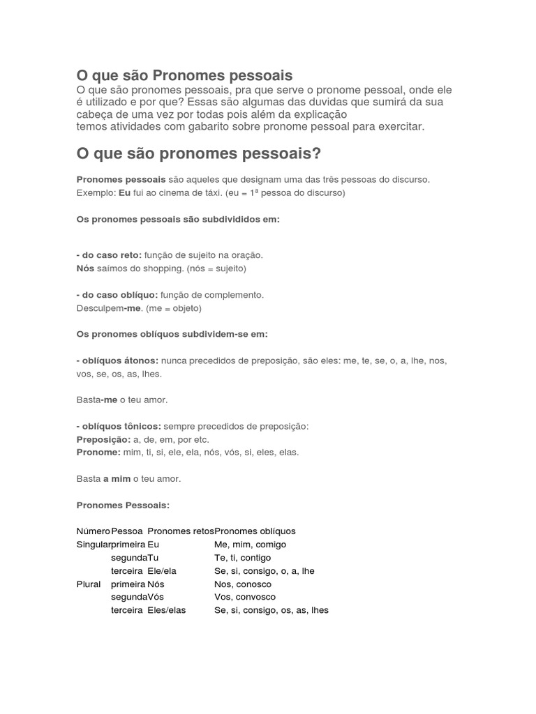 temos atividades com gabarito sobre pronome pessoal para exercitar.