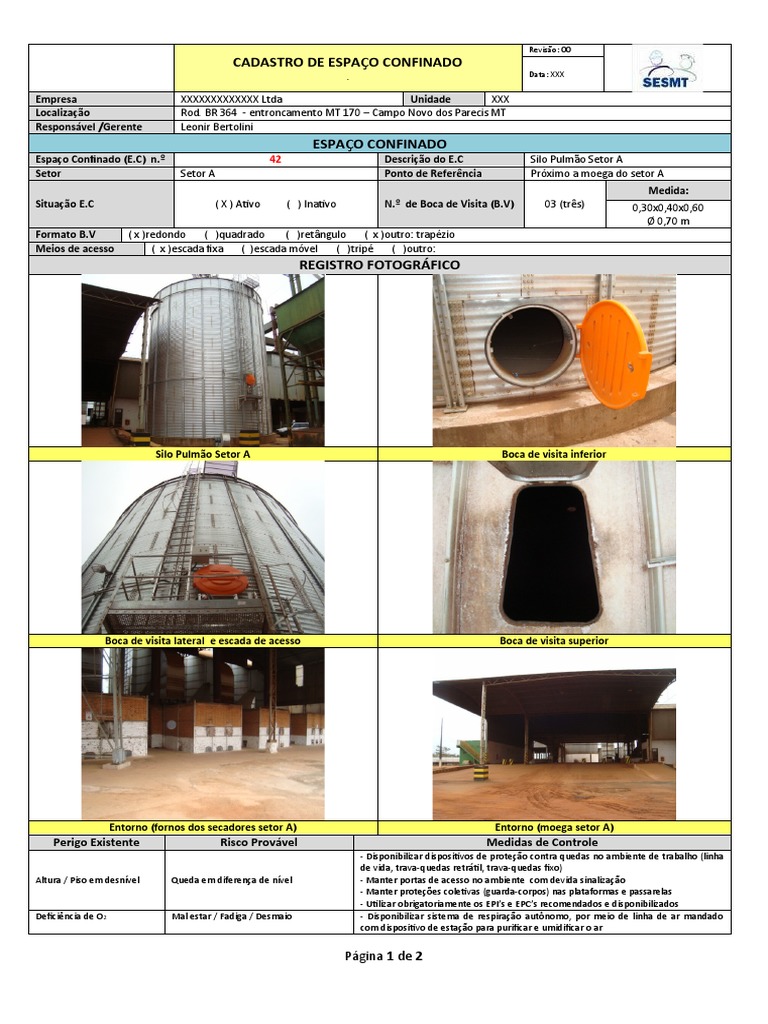 Espaço Confinado (E.C) n.º 42 Descrição do E.C Silo Pulmão Setor A