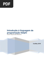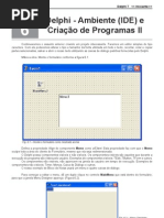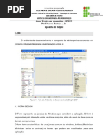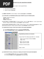 6) Selecione a combobox (caixa de seleo de itens) e arrumar as seguintes propriedades: Font Text: deixar em branco Itens: 1 2 3 Name: QtdeParcela 7) Selecione o boto Sair e arrume as seguintes propriedades: Caption : Sair Font : escolha um estilo, cor e tamanho Glyph: escolha uma figura Name : Sair 8) Arrume as propriedades do boto Limpar (veja como foi feita do boto Sair) 9) Selecione a combobox que est no form. No Objec. Insp. selecione a aba Events e procure o evento Onclick e clique 2x no espao em branco. Entre o begin e end digite o cdigo abaixo: ValorParcela.text:=formatfloat('0.00', (strtofloat (ValorCompra.text) / strtofloat (QtdeParcela.text))); 11) Arrumar o cdigo do Sair e do limpar 12 ) Salve todo o projeto em File -> Save All 13) F9 para testar o projeto. Digite valor da compra, selecione uma qtde de parcela e verifique o valor calculado da parcela. 14) Feche o Delphi. ATIVIDADE 3 PRODUTO Criar na pasta Delphi um pasta chamada Produto Abrir o Delphi