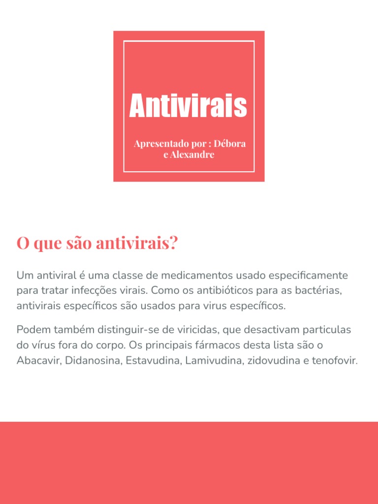 Um antiviral é uma classe de medicamentos usado especificamente