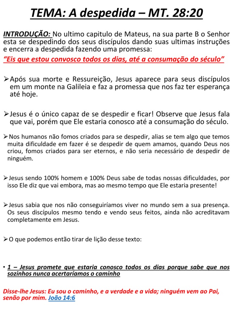 INTRODUÇÃO: No ultimo capitulo de Mateus, na sua parte B o Senhor