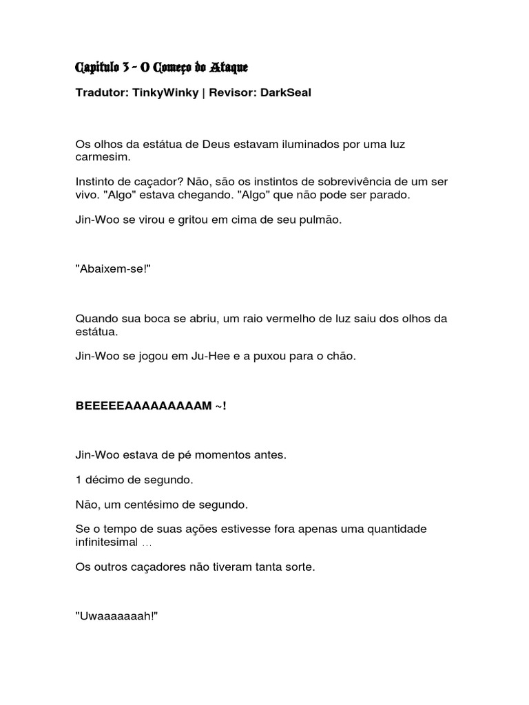 Embora surpreso, Jin-Woo ouviu suas palavras com firmeza.