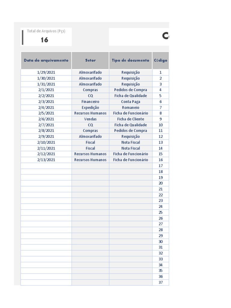 Total de Arquivos (Pçs) Arquivado Falta arquivar