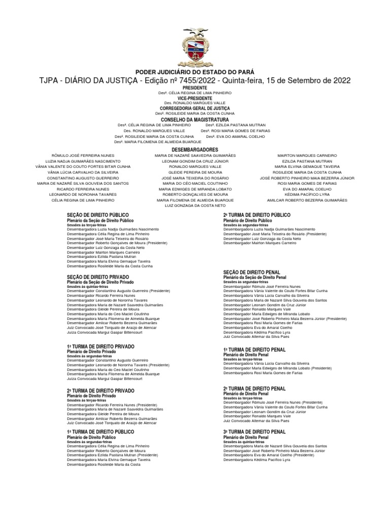 TJPA - DIÁRIO DA JUSTIÇA - Edição nº 7455/2022 - Quinta-feira, 15 de Setembro de 2022