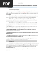 outros serviços. A Internet possibilita que este texto, por exemplo, seja lido em qualquer local