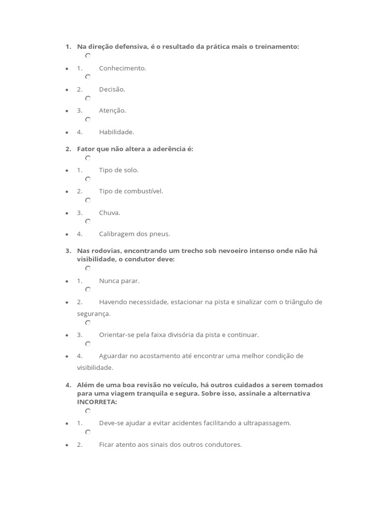 8. O condutor que, na direção do veículo, evita situações de acidentes ao