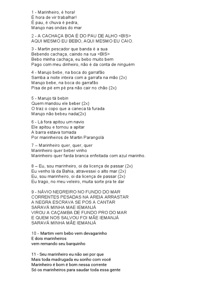 8 – Eu, sou marinheiro, oi da licença de passar (2x)