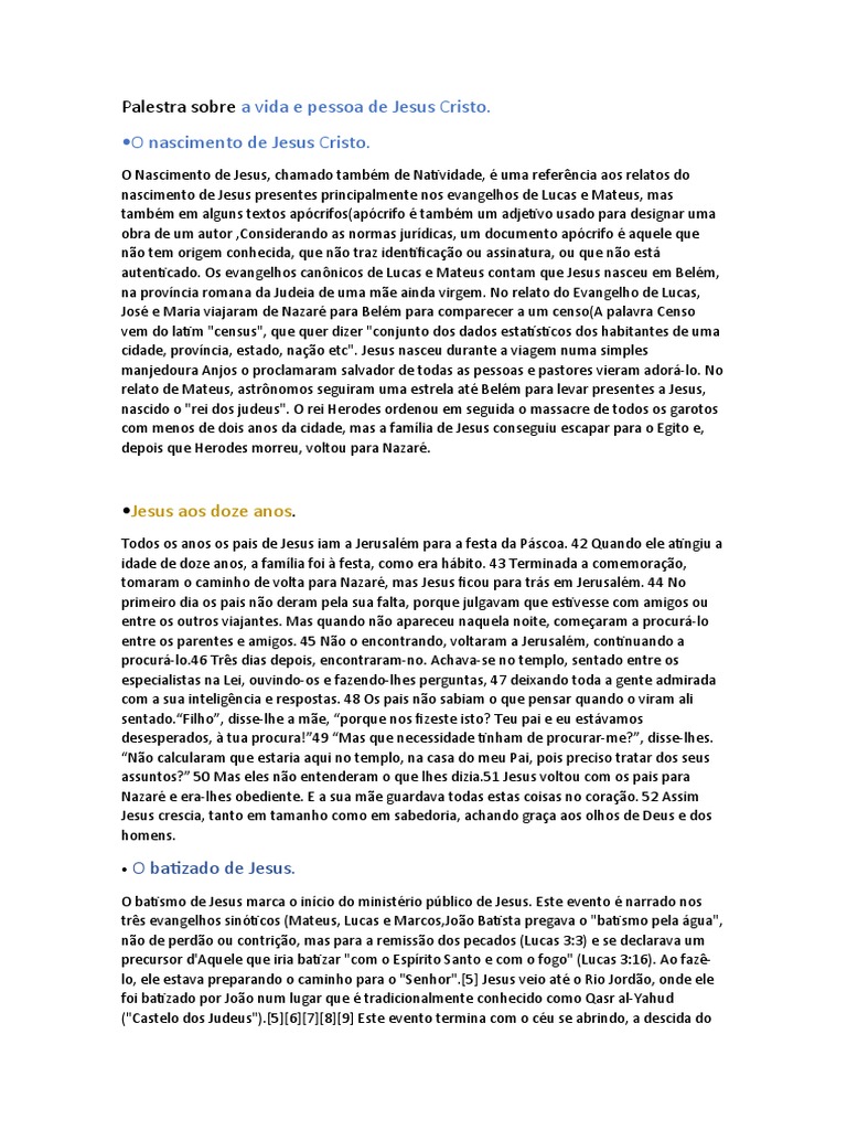 Palestra sobre a vida e pessoa de Jesus Cristo.