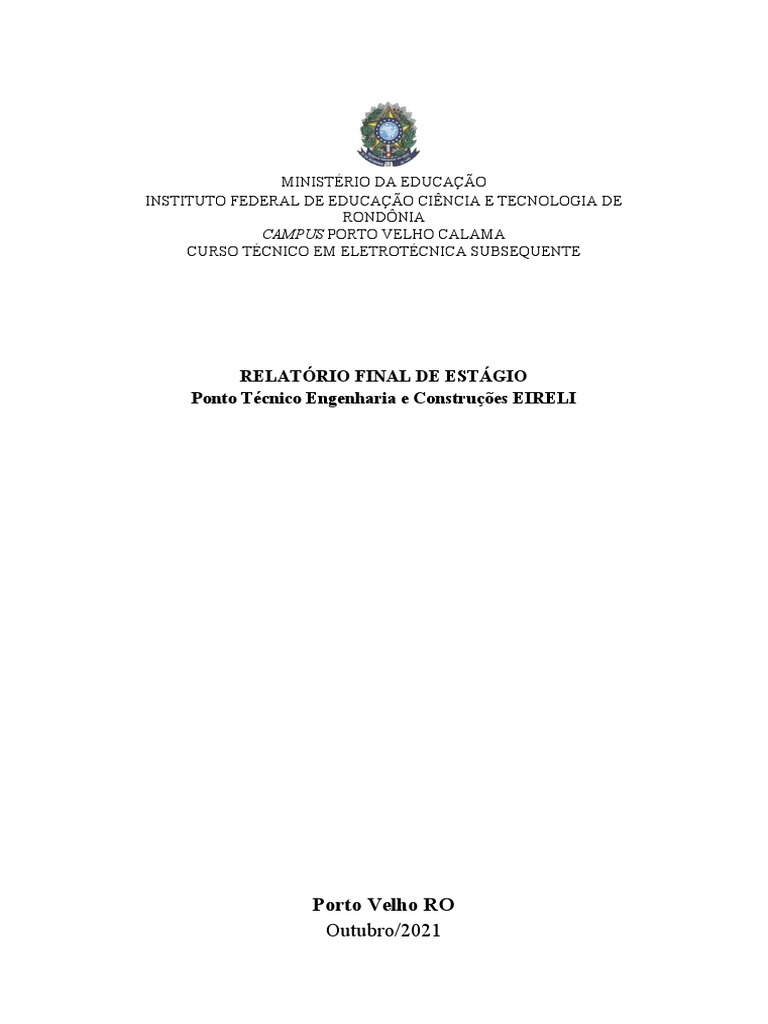 para conclusão do curso técnico em eletrotécnica, ofertado pelo IFRO Campus Porto
