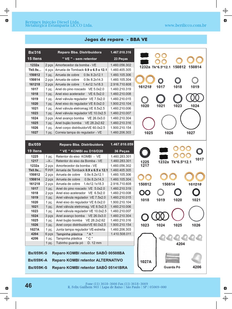 Bx/059K-A Reparo KOMBI retentor ALTERNATIVO 1027A