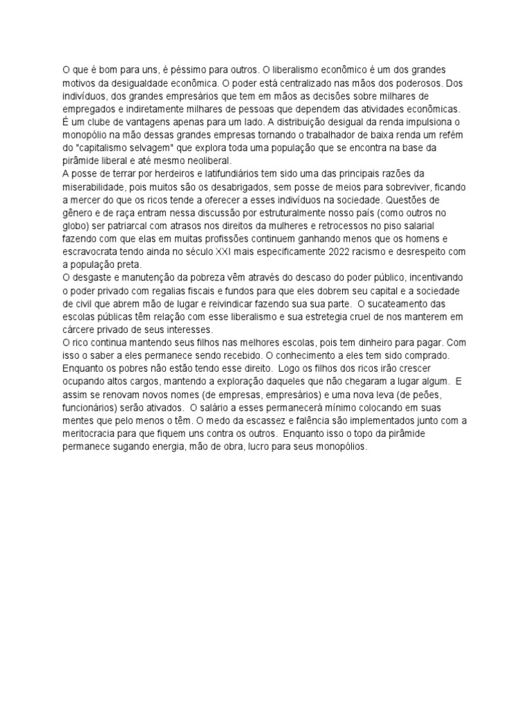 motivos da desigualdade econômica. O poder está centralizado nas mãos dos poderosos. Dos