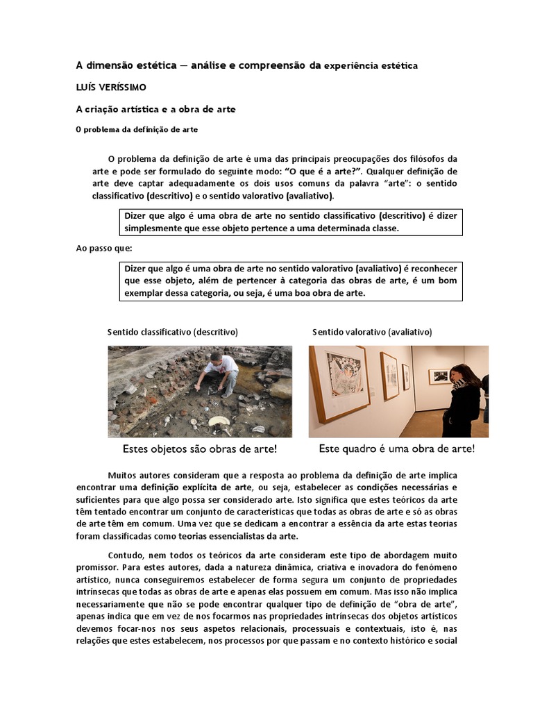 necessariamente que não se pode encontrar qualquer tipo de definição de “obra de arte”,